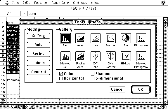 Options pull-down menu.  Then click on the icon of the desired chart
