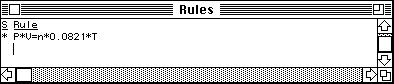 1. Type all the equations that relate to the problem on the Rule Sheet in standard "computer algebra" notation and press RETURN after each equation. In this case there is only one equation, e.g. P*V=n*0.0821*T. Be sure to use unique variable names for each variable. Also make sure that the equations are based on a consistent set of physical units; that is, if one equation is written for L in liters, the all the equations must be written for L in liters.