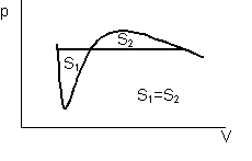 As the last exercise students are offered to find the solution for simple numerical problem. More exactly, using van der Waals equation for a real gas at a given temperature, they must determine the value for the vapor-liquid equilibrium pressure (with the help of Maxwell's rule: p=const and S1=S2, see figure below).