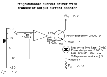 Programmable current driver with transistor output current booster |