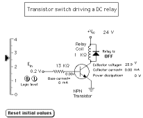 Transistor switch driving a relay |