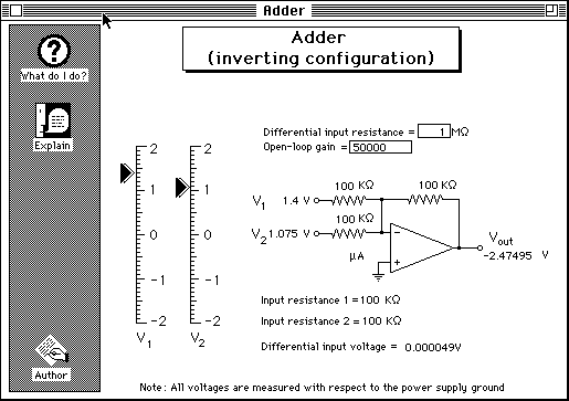 Adjust the two sliders on the left to change the input voltages to the circuit.