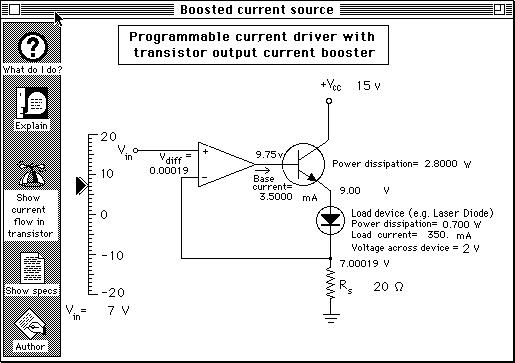 The slider adjusts the input voltage to control the current through the load device.