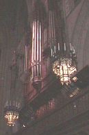 The organ is located in the choir. It has 150 pipes. The smallest pipe is the size of your pinky finger. The biggest can fit a full grown man in it. The organ is made of oak and steel. It is lit by two stained glass lamps.