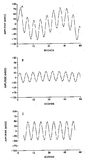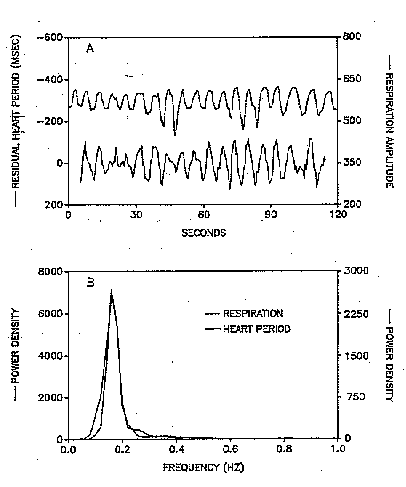 If the variability of the heart period activity were solely determined by respiratory sinus arrhythmia, measurement of either the "up-phase" or "down-phase" would provide an extremely accurate measure of respiratory sinus arrhythmia. However, respiratory sinus arrhythmia is usually superimposed on a complex trend and other slower periodic processes which are not perfect sine waves (e.g., Traube-Hering-Mayer wave).