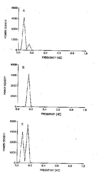 The Traube-Hering-Mayer example understates the problem of harmonics in the heart period spectrum. The heart period pattern is very complicated. The spectral densities in the frequency bands associated with both the Traube-Hering-Mayer wave and respiratory sinus arrhythmia are confounded by even slower periodic non-sinusoidal processes which reflect thermoregulatory, ultradian, and circadian influences.