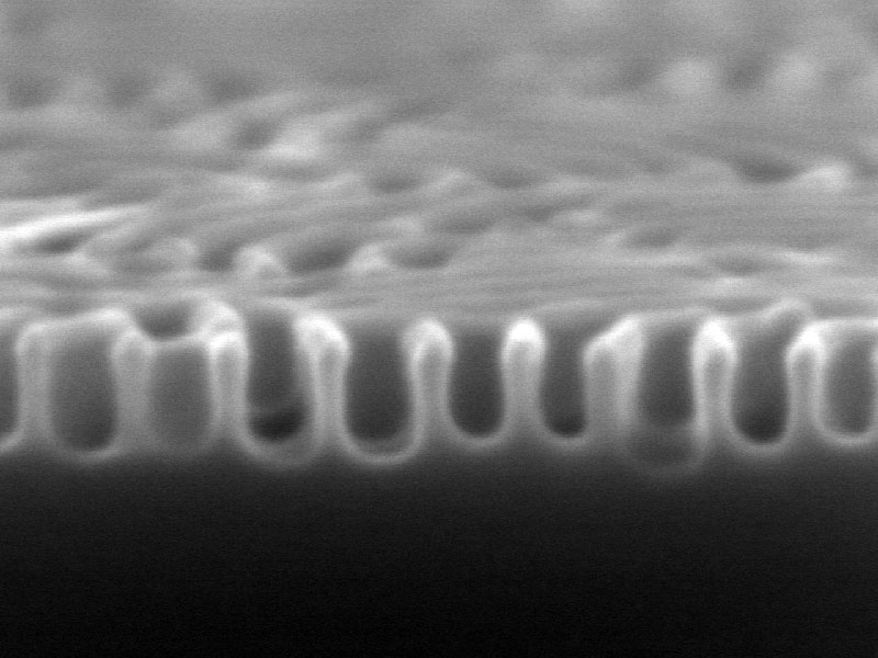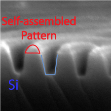 Very nice 10nm wide silicon fins from block copolymer self assembly and very simple one step SF6+C4F8 RIE. Much nicer than the two steps etching.