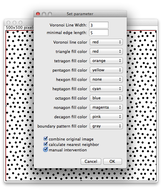 This is an ImageJ plug-in developed to analyze the quality of self-assembled pattern with Voronoi Diagram, like the image below.